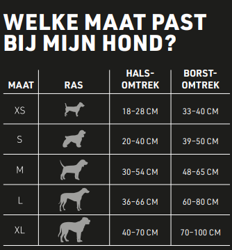 - XS: Nek 18-28 cm – Borst 33-40 cm / 15 mm